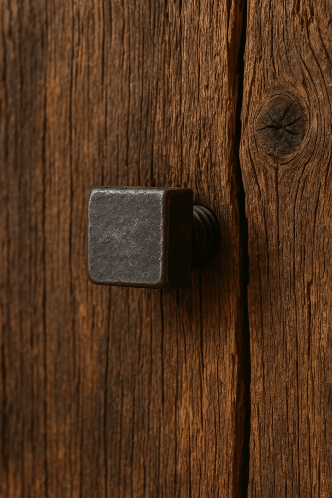 - Cabinetry: Even simple pine gets a lift with iron knobs or miniature square head bolts.