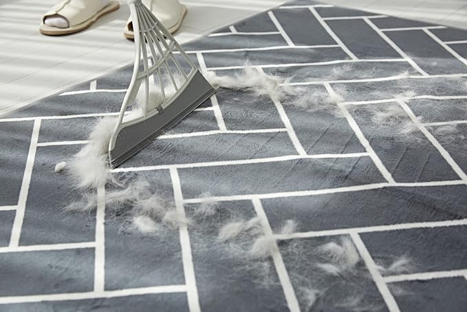 I use a silicone dust broom that works on hard floors, rugs, furniture, and, bless it, dog hair. It scrubs without scuffing (and, truly, this broom is so gentle that I squeegee my high windows with it) and stores neatly behind the wood rack.